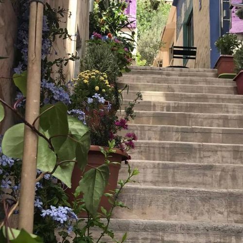 The main lobby is reached via a wide plant lined easy rise stairway.